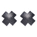 Designed in a striking cross shape, each pasty is intricately covered with shimmering black gems that catch the light beautifully, creating an eye-catching effect on the skin. The deep, glossy finish of the stones adds an elegant contrast and gives the stickers a luxurious, high-fashion appeal.